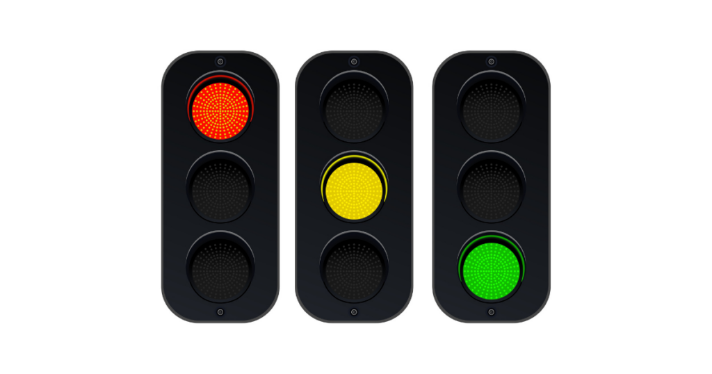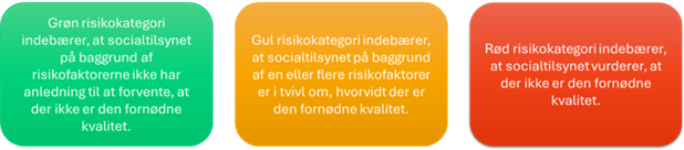 I risikomodellen kategoriseres alle tilbud og plejefamilier ud fra et ”trafiklys” i grøn, gul og rød. Figuren viser definitionerne af de tre kategorier: